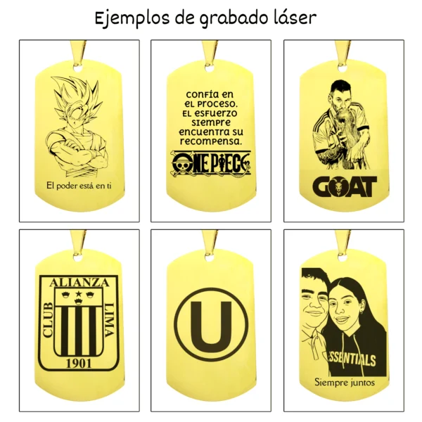 - Ejemplos de grabado: nombre(es), inicial(es), fecha, número(s), frases en español o inglés.