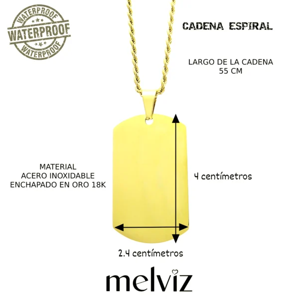 - Material de cadena y dije: Acero Inoxidable Enchapado en Oro de 18k