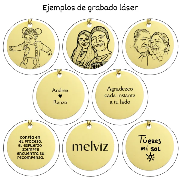 - Ejemplos de grabado: nombre(es), inicial(es), fecha, número(s), frases en español o inglés.