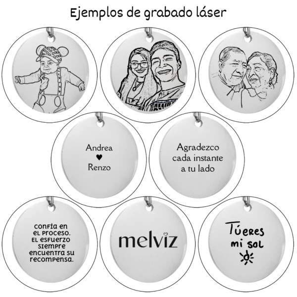 - Ejemplos de grabado: nombre(es), inicial(es), fecha, número(s), frases en español o inglés.